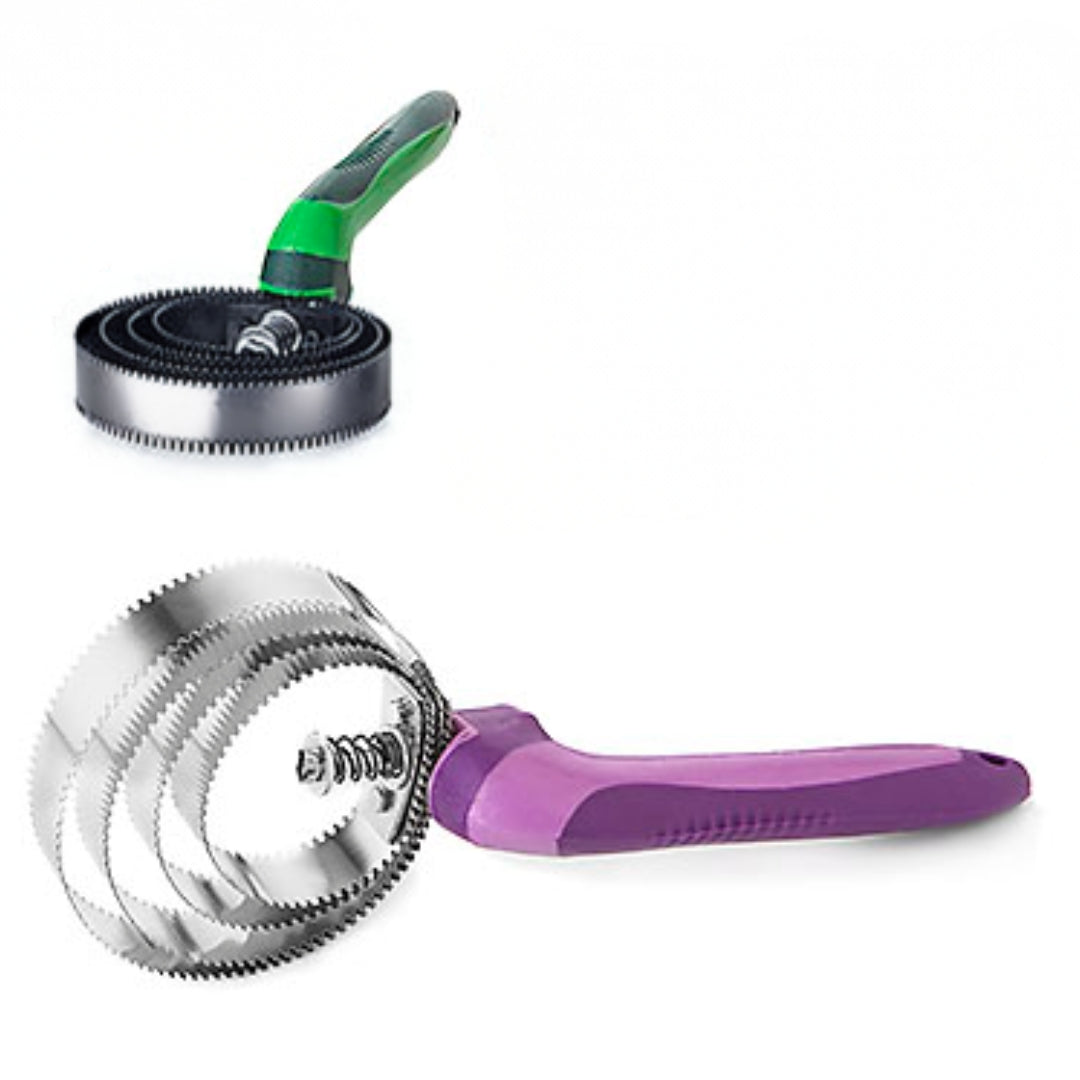 El espiral metálico reversible puede girarse para utilizar uno de los dos lados de púas diferentes (ver foto con detalle).